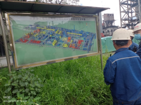 8月1日14:10分,丙班副班長段江威帶領(lǐng)輪崗員工,從西鋼釩智慧煉鐵主控制中心開車到3公里外的焦化煙氣脫硫脫硝現(xiàn)場。到達(dá)現(xiàn)場后,段江威首先組織輪崗員工了解了焦化廠區(qū)布置,知曉生產(chǎn)設(shè)備的運行狀態(tài),最主要的是結(jié)合中控操作參數(shù),更快速的掌握生產(chǎn)工藝,提高自身操作技能。段江威在場區(qū)布置圖前介紹了危險區(qū)域和如何安全生產(chǎn)規(guī)避風(fēng)險,強調(diào)安全重如泰山。